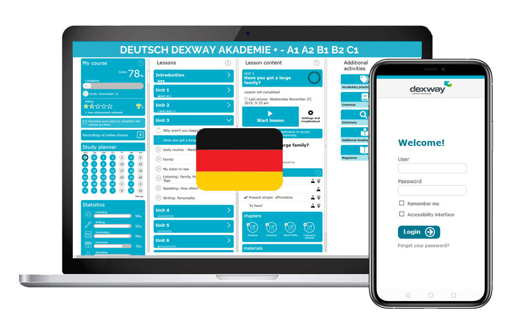 En este curso de alemán con el método online de Dexway, desarrollarás habilidades lingüísticas de manera natural, gracias a lecciones estructuradas presentadas en contenidos interactivos.