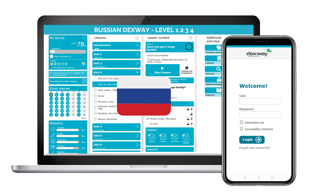 Mediante el curso para aprender ruso con el método online de Dexway, desarrollarás habilidades lingüísticas de manera natural, gracias a lecciones estructuradas presentadas en contenidos interactivos.